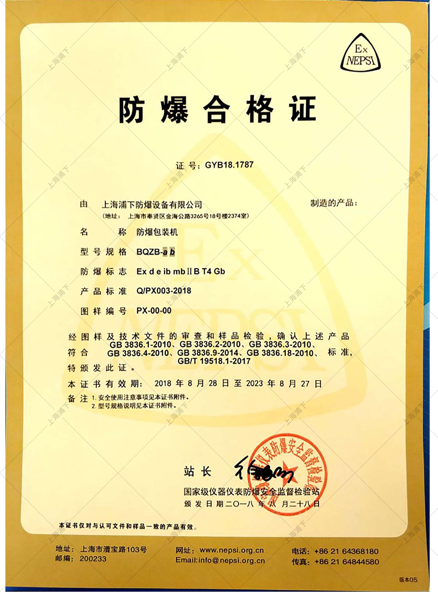 防爆立式包裝機(jī)適用于化工、醫(yī)藥、制藥、民爆、實(shí)驗(yàn)室航天航空等領(lǐng)域中易燃、易爆物品的包裝封口、儲(chǔ)存。可使用于存在強(qiáng)烈氣體混合物IIA~IIB級(jí)環(huán)境,有溫度控制要求的場所